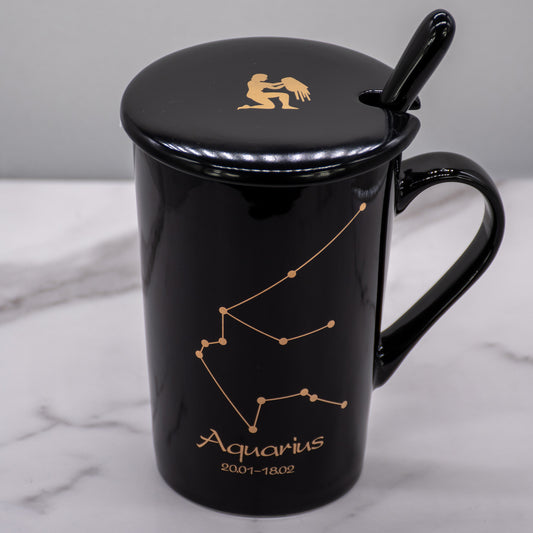 Aquarius Zodiac Porcelain Mug with Spoon & Lid