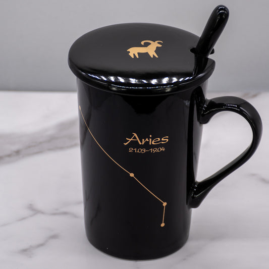 Aries Zodiac Porcelain Mug with Spoon & Lid