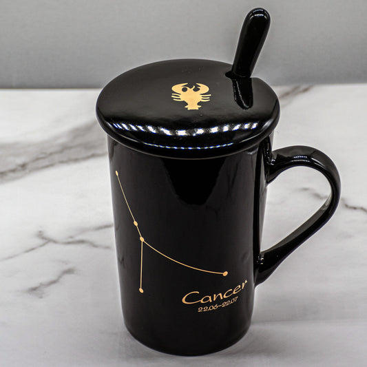 Cancer Zodiac Porcelain Mug with Spoon & Lid
