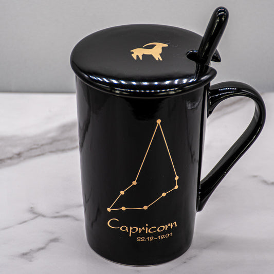 Capricorn Zodiac Porcelain Mug with Spoon & Lid
