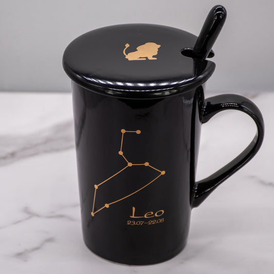 Leo Zodiac Porcelain Mug with Spoon & Lid