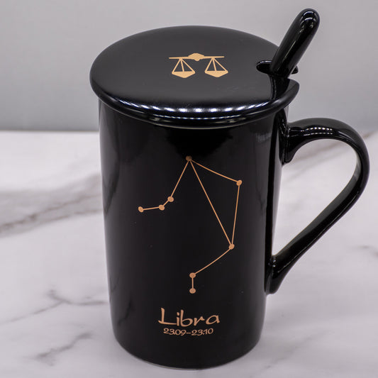 Libra Zodiac Porcelain Mug with Spoon & Lid
