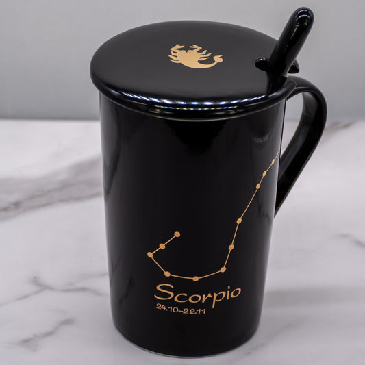 Scorpio Zodiac Porcelain Mug with Spoon & Lid