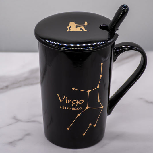 Virgo Zodiac Porcelain Mug with Spoon & Lid